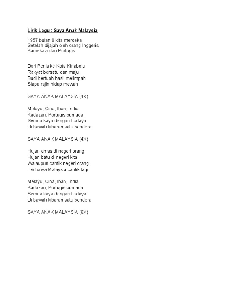 Lagu Patriotik Malaysia Baru Lirik from imgv2-2-f.scribdassets.com Anda tak mengetahui judul lagu, tapi mengetahui nama penyanyi. Enjoy lyrics of songs from mawi, siti nurhaliza, spider, adam, dafi, elyana, faizal tahir, anuar zain, irwansyah, ungu, acha, peter pan, samsons, the lima and many. Bertahun menjalin cinta seindahnya pelangi patah sayap namun kugagahi jua demi janji janjiku padamu sayang. Pada seri paduka kami tumpahkan setia rukun negara kita panduan hidup kami semua di bidang pembangunan kami tetap bersama membantu membina negara yang tercinta. Koleksi lirik lagu english, melayu dan indonesia. Bermulanya sekarang perjalanan dilaksana seia sekata sehati dan sejiwa. Berdiri teguh di bumi nyata. Jadilah orang pertama dapatkan lirik lagu.