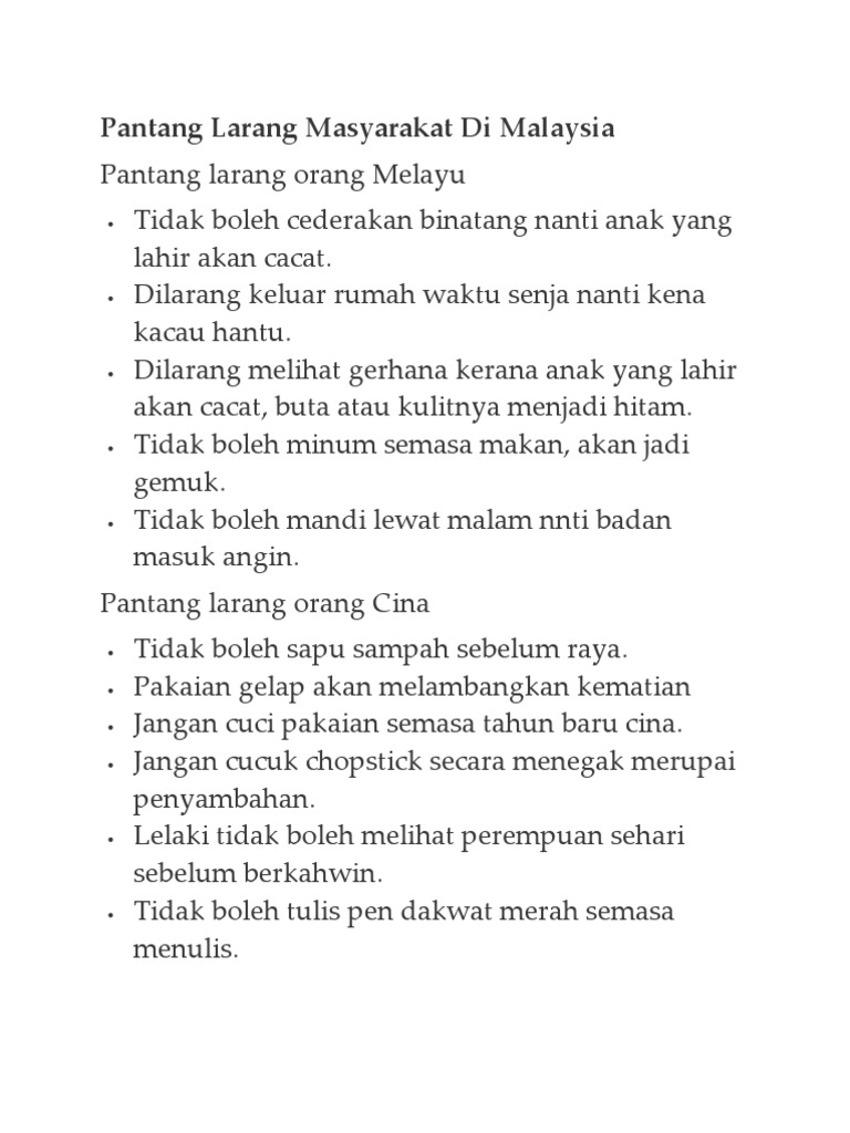 Pantang larang merupakan kepercayaan mayarakat melayu zaman lampau berkaitan dengan adat dan budaya warisan nenek moyang. Masyarakat baba nyonya di melaka fasih bertutur bahasa melayu dan mengikut fakta sejarah golongan ini mempunyai pertalian dengan di samping itu, jurnal ini juga turut mamaparkan data berkenaan dengan asimilasi dalam kepercayaan dan pantang larang masyarakat baba dan nyonya. Joao ponces de carvalho ubd students film, 2015. They are also strongly prohibited from entering the wedding chamber! Setiap perkahwinan semestinya terdapat pantang larang tertentu bagi mengelakkan sesuatu perkara terjadi.